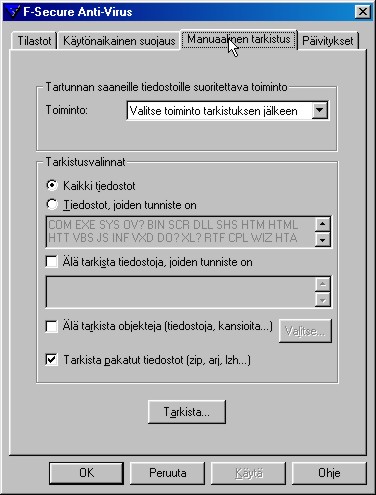 ohjelman ominaisuuksien hallintaikkuna. Valitse Manuaalinen tarkistus