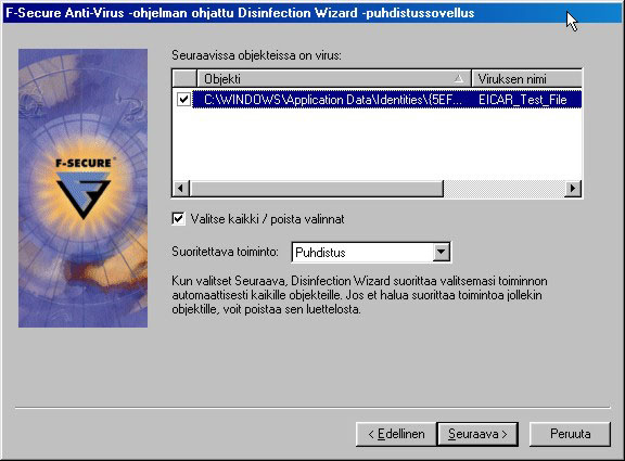 Mikäli tarkistuksen aikana ei saastuneita tiedostoja löydy, edetään