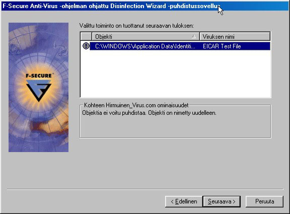 asetuksien mukaisesti, mitään toimenpiteitä saastuneelle tiedostolle ei