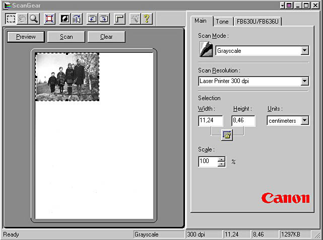 Valitse File/Acquire image/Acquire, jolloin avautuu seuraavanlainen säätöikkuna.