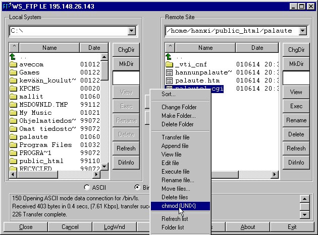 Palaute1.cgi -scripti on tehty perl-kielellä ja tekee kaksi asiaa.