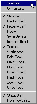 Valitse Toolbars / Työkalut