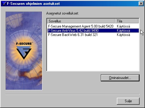 Avautuu ohjelmien asetukset -ikkuna. Tuplaklikkaa F-Secure