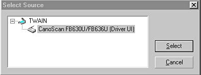 Valitse File/Acquire image/Select source, ja valitse oikea laite (select).